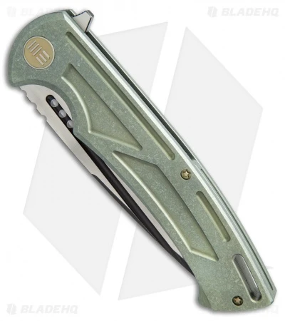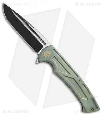 This 614C model sports a green titanium handle and a two-tone blade with satin flats and black grinds. The We Knife Co. 614 flipper has a large modern design with dependable titanium construction. It’s equipped with a high performance Bohler M390 steel blade and a titanium frame lock handle with a titanium pocket clip and back spacer. Machined grooves in the handle provide improved grip and added style to the design.