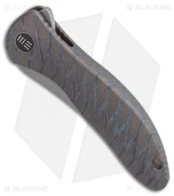 The WE Knife Co. 620A is a resilient frame lock folder made with premium materials and built-to-last construction. Its wharncliffe style blade features deep notched jimping, ambidextrous thumb studs, and a two-tone finish with black grinds and satin flats. Ergonomic contouring, double choil grip, and subtle texturing ensures security in-hand at all times. The 620A is equipped with ceramic ball bearings for quick, responsive blade deployment. This model has a purple anodized titanium handle with bronzed hardware.