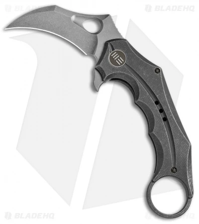 This 708D model comes equipped with a gray titanium handle and a karambit style blade with a stonewash finish. Pick up a tactical EDC companion with the long-awaited 708 Karambit folding knife from We Knife Co. The 708 is compact enough for everyday carry yet packs a serious punch in self defense situations. It has a flipper opener, assisted by a smooth ceramic ball bearing pivot for minimal deployment times. The handle is outfitted with a titanium clip for comfortable pocket carry and a finger hole for maximized blade control. Bronze anodized titanium hardware finishes off the impressive design.