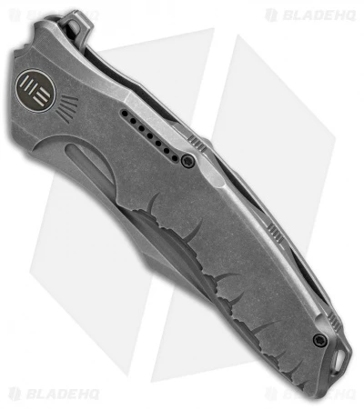 The WE Knife Co. Chimera offers custom style at a production price. This model sports a gray titanium handle and a clip point blade with a blasted and stonewashed finish. The modified clip point blade flows naturally from the handle further accentuating the distinctive style of the Chimera. An intricately machined titanium backspacer and pocket clip finish off the impressive design.