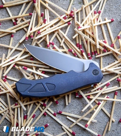 Advanced ergonomics are on full display on the model 037 from WE Knife Co. and designer Kellen Bogardus. This 037 is built with a polished bead blast blade and a blue titanium handle. Add an exciting EDC design to your collection with the WE Knife Co. 037.