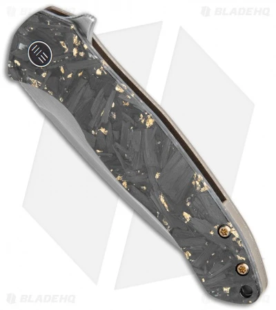 This limited edition knife sports a CPM-20CV blade, with a spear point profile that lends itself well to piercing tasks. This model has a gold shred carbon fiber rubbed satin gray handle that accommodates several grips, including choking up on the blade using the integrated finger choil. The WE Knife Co. Kitefin may just be one of the best EDC knives ever made.