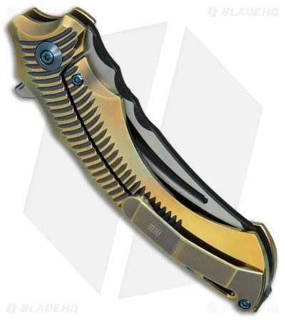 This Sea Monster model has a gold anodized handle and a two-tone black/satin blade.